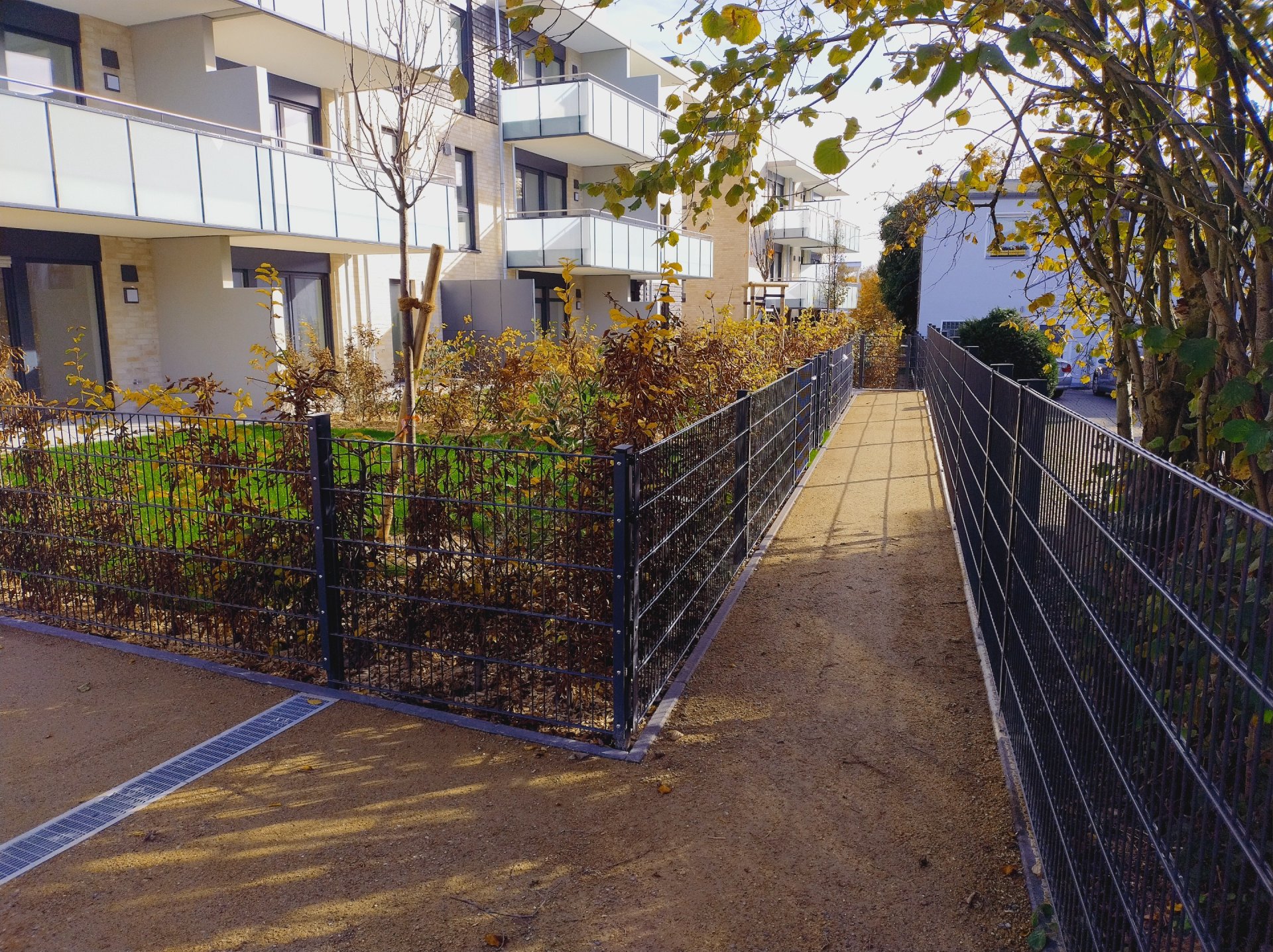 À l’automne 2025, l’entreprise Galabau Rainer Eschbach de Much a appliqué des couches de surface en Koers KoMex Jaune sur plusieurs petites aires de jeux et allées piétonnes dans le nouveau quartier résidentiel de la Uferstraße à Leichlingen. Le quartier comprend 69 nouveaux appartements en copropriété répartis sur cinq bâtiments, à seulement quelques centaines de mètres de la Wupper et du centre-ville.