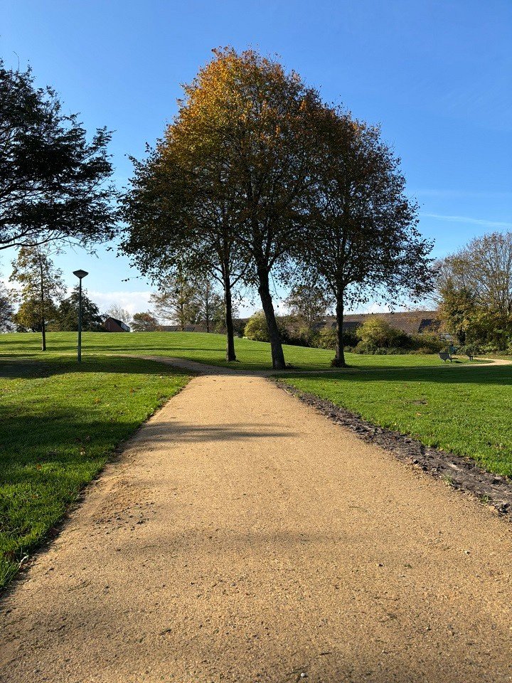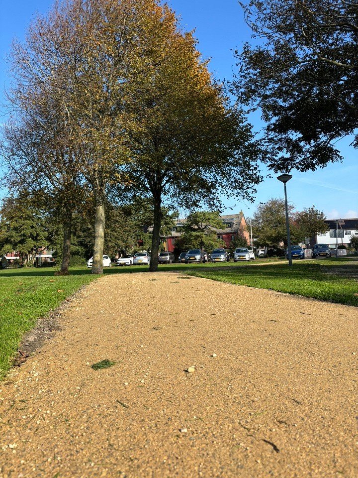 In de wijk Zeeburg in Noordwijk ligt de KoMex gele variant verwerkt. Midden in het groene buurtparkje komt de gele halfverharding prachtig tot zijn recht. De frisse kleur vormt een warm contrast met het weelderige groen eromheen, kinderen kunnen hier heerlijk spelen, een balletje overtrappen of wat dan ook, zo kun je hier ook enkel een wandeling maken om even te ontsnappen van de dagelijkse druktes.