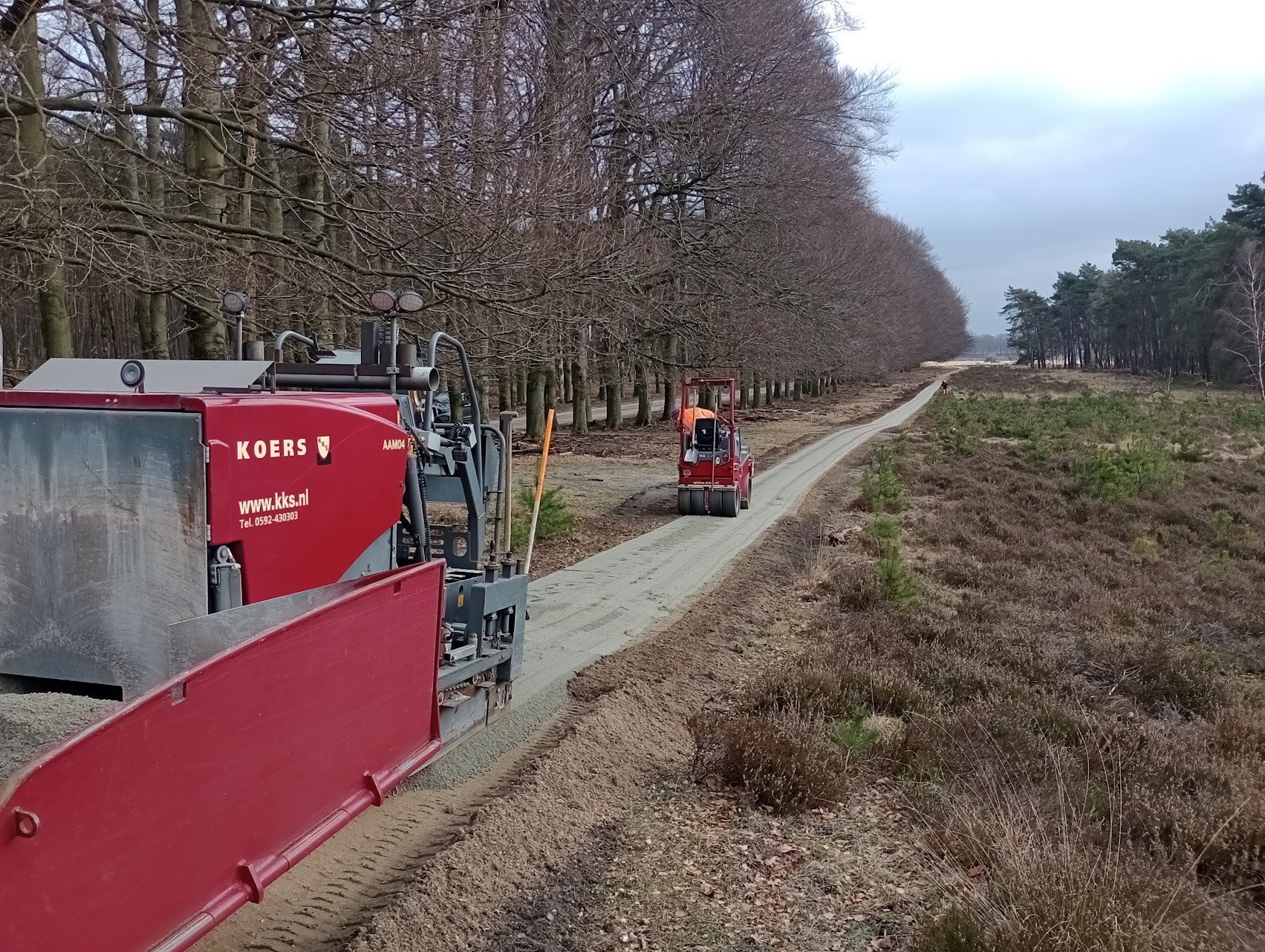 Voor de aanleg van de fietspaden is bewust gekozen voor DurEko-mix, een waterdoorlatende halfverharding die uitstekend past binnen een kwetsbare en ecologisch waardevolle omgeving. Het materiaal biedt een hoge mate van stabiliteit en comfort voor fietsers, terwijl het tegelijkertijd een natuurlijk ogend oppervlak heeft dat harmonieus opgaat in het landschap van de Veluwe.